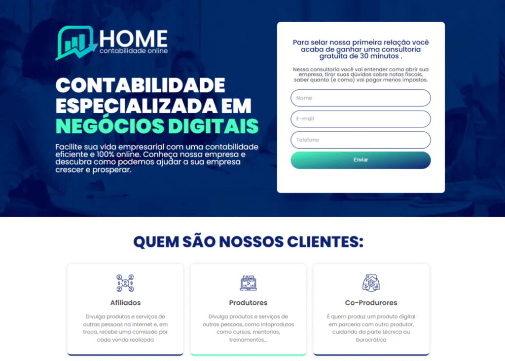 Uma página 100% focada em alta conversão para transformar visitantes em clientes ou em leads.